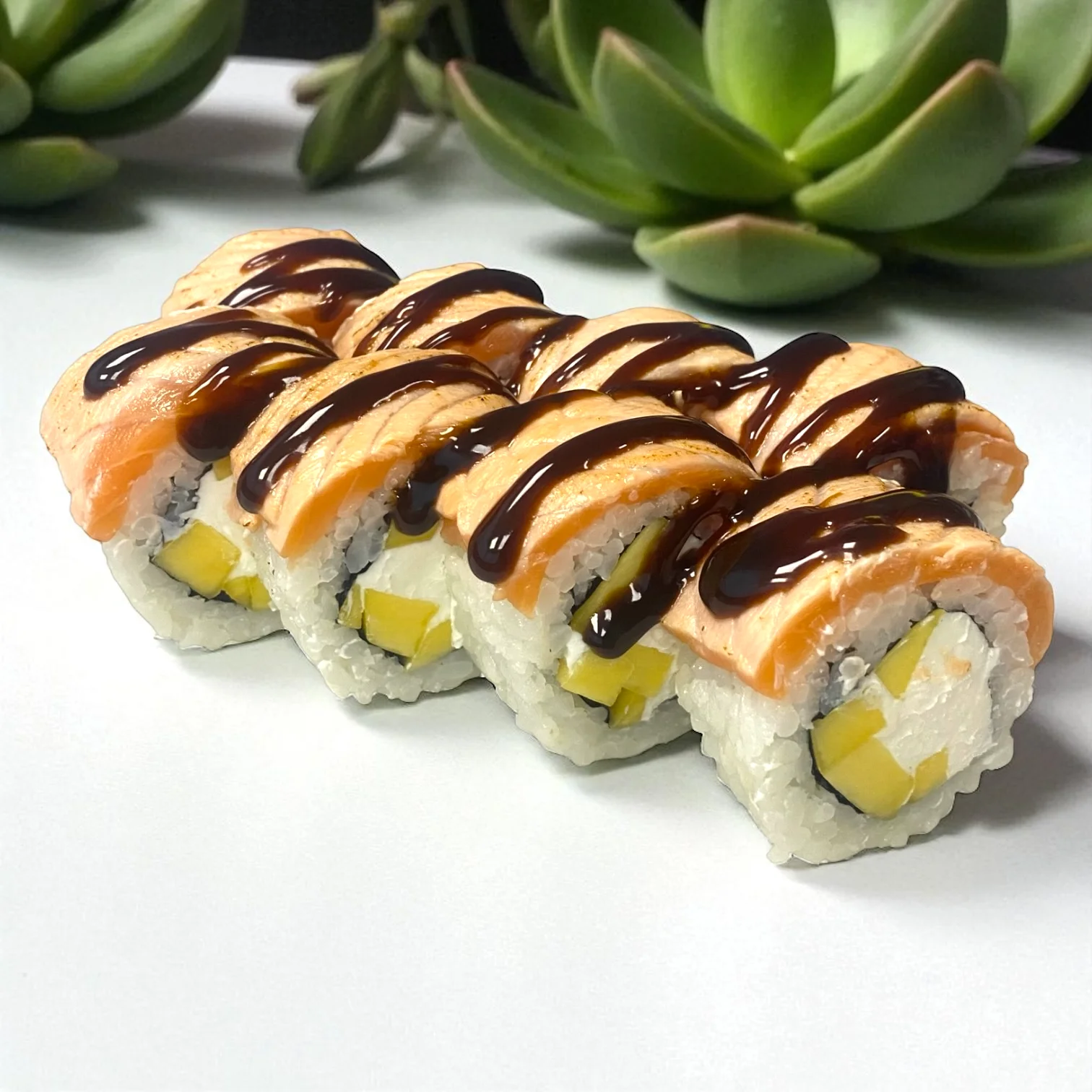 Грін Делайт, Каліфорнія зі смаженим лососем, Філадельфія з лососем, Футомак з лососем